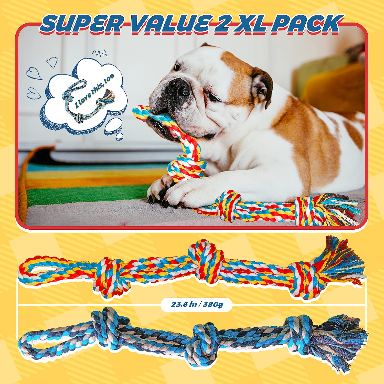 XL Dog Rope Toys for Aggressive Chewers Set of 2 Heavy Duty Indestructible Dog Rope Toy for Large Breed Puppy 100 Cotton Strong Sturdy Rope Medium and Large Dogs for Very well made.
