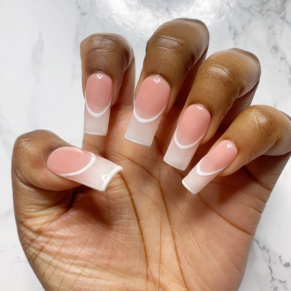 White Ombre French Tip Outline Press on Nails Almond Nails Coffin Nails Square Nails Etsy Very well made.