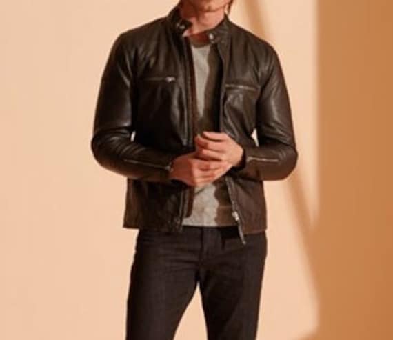 Superdry Brown Leather Men s Bomber Moto Racer Jacket Size Small Etsy Very well made.