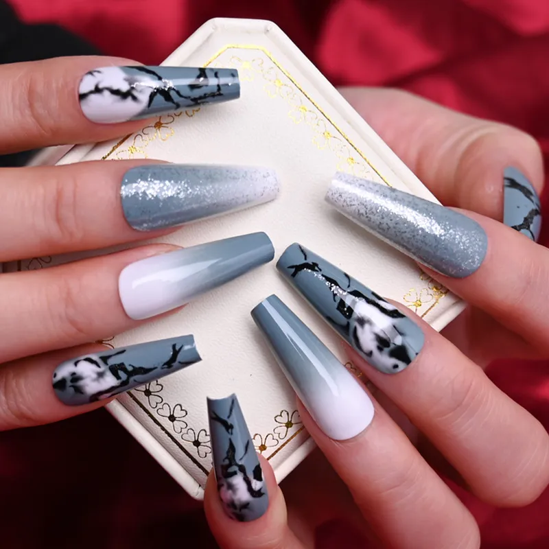 24 Blue Gray marble Press On Nails kit glue on Gray smoky art extra long coffin eBay Very well made.