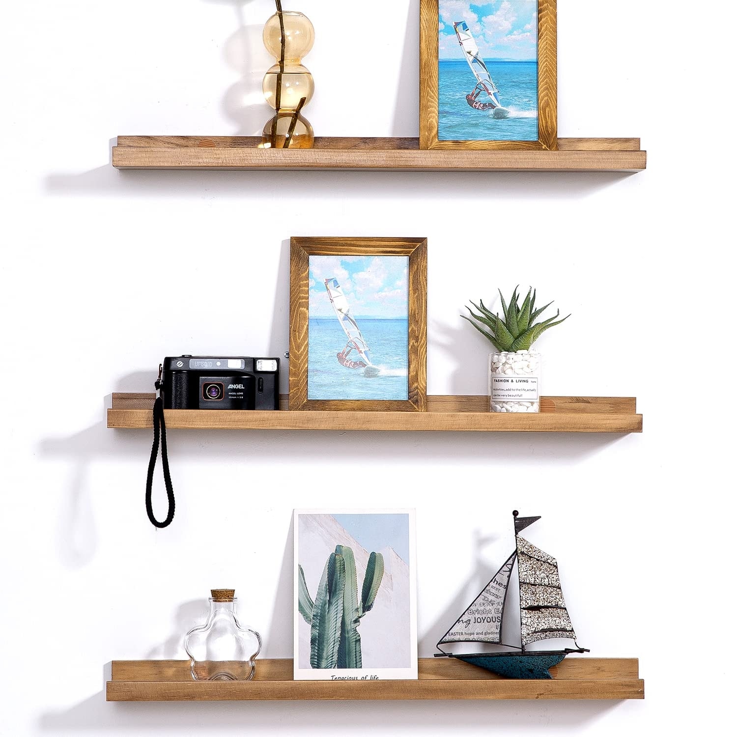Rustic Floating Shelves Wall Shelf Light Walnut 24 Inch Narrow Wooden Photo Picture Ledge Display Wall Shelves with Lip a Set of Bed Bath Beyond 40372721 Very well made.