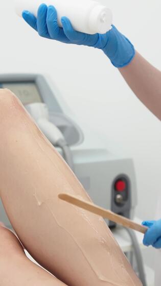 An esthetician prepares for laser hair removal by applying a cooling gel. Ideal for illuminating professional skin care and beauty treatments in a modern clinic 49531025 Stock Video at Vecteezy Very well made.