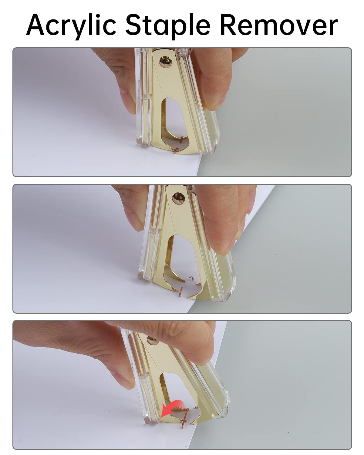 MSDADA Staples Desk Accessories 3 Kit Transparent Acrylic Stapler Set with 1000 Staples Staple Remover Tape Dispenser Golden Amazon Stationery Office Supplies Very well made.