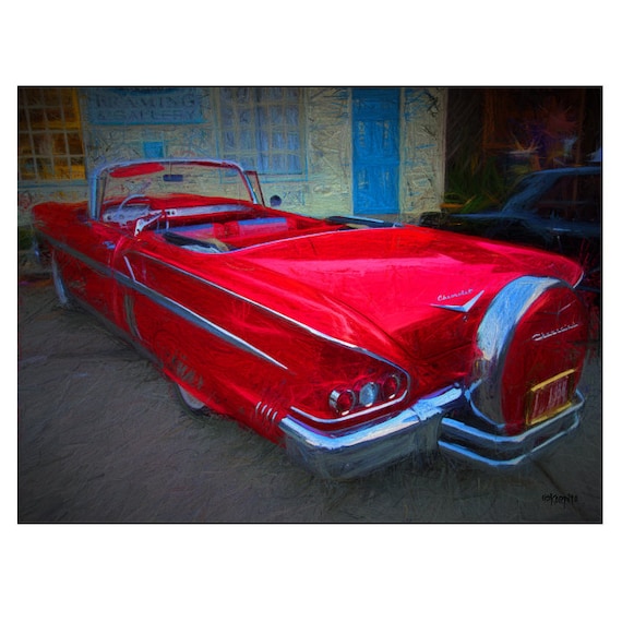 Classic Car Art 1958 Chevy Impala Old Red Convertible Cruising the Coast Red Chevy Impala MS Gulf Coast Old Cars KORPITA Very well made.