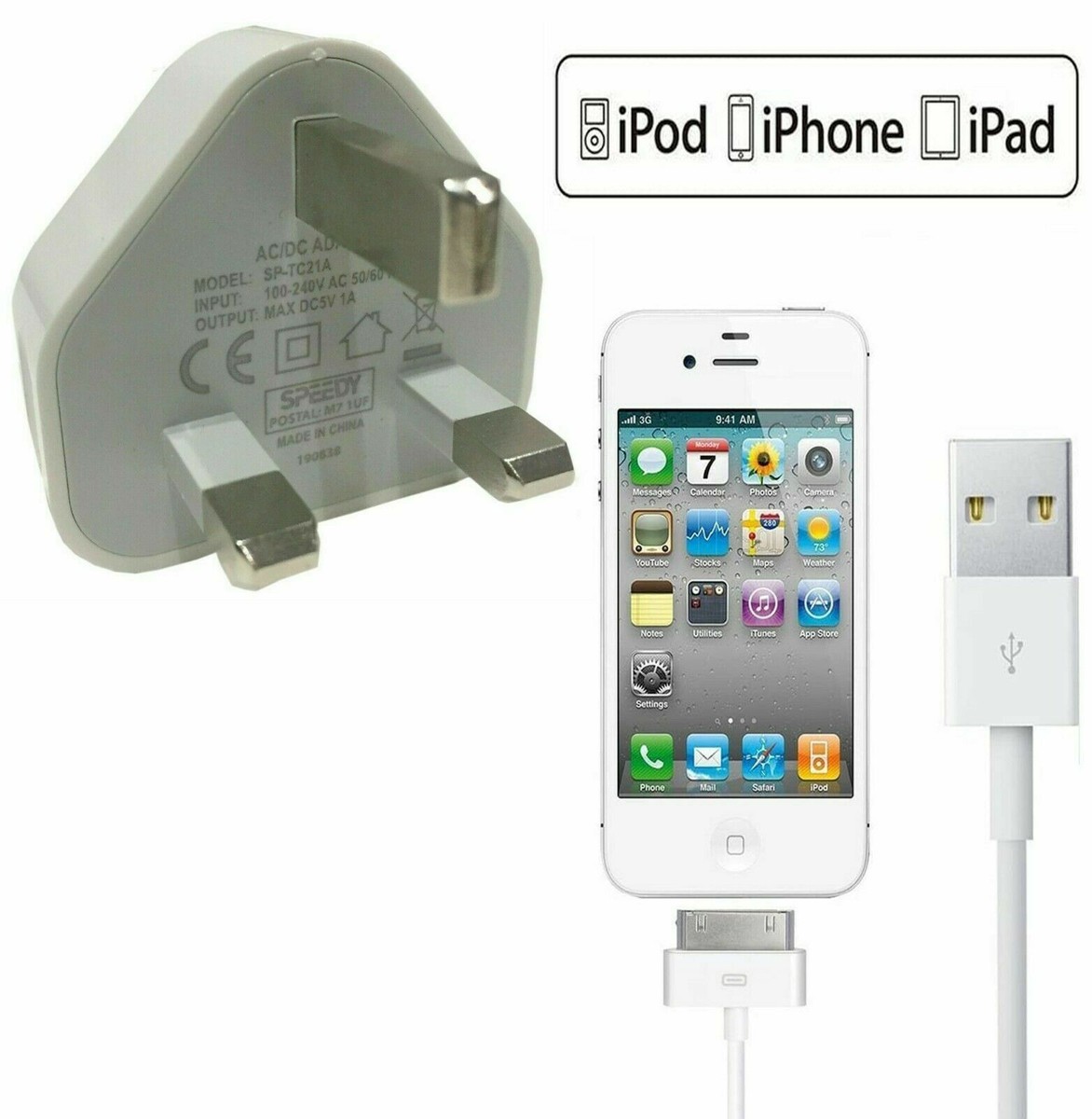 Genuine CE Charger Plug USB Cable For Apple IPhone 4 4S 3G 3GS IPad IPod White Very well made.