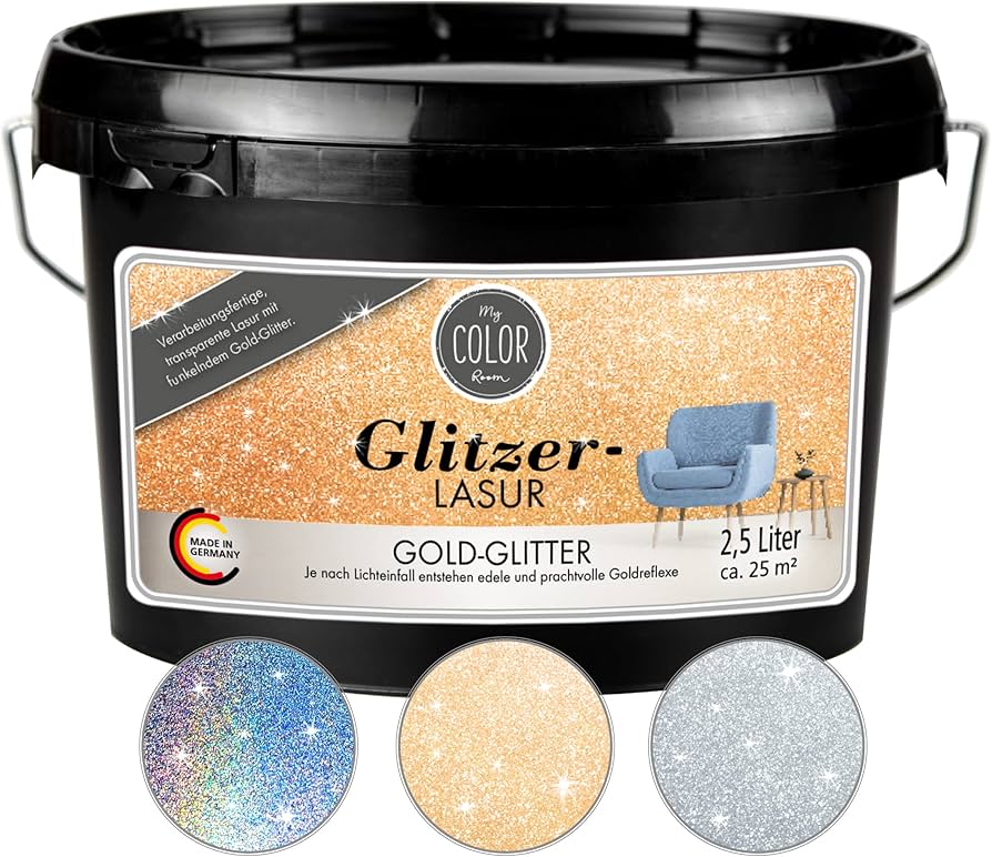 My COLOR Room Glitter Stain 2500 ml Gold Transparent Glitter Wall Paint for Wall Design with Glitter Effect for Indoor Use Decoration Glaze Made Very well made.