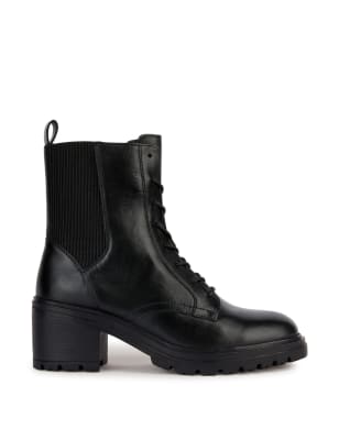Leather Lace Up Block Heel Ankle Boots Geox M S Very well made.