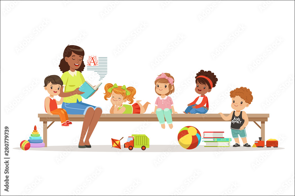 Cartoon preschool kindergarten with boys Vector Image Very well made.