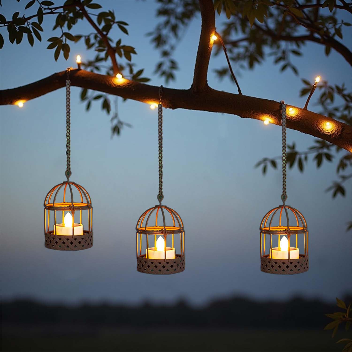 Solar Hanging Lanterns Outdoor Waterproof Rust Birdcage Candle Holder with Flickering Solar Powered Tea Lights Rechargeable Solar Lantern Lights for Very well made.