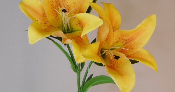 2 Artificial Lily Flowers in vase For Table Decor 1052 Very well made.