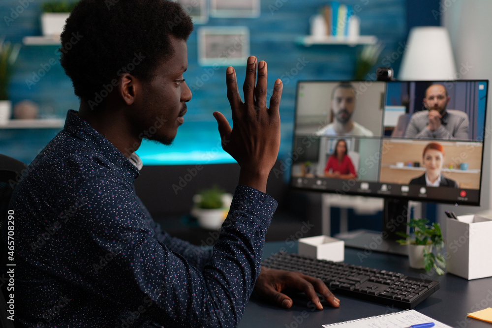 Photo Art Print Student greeting remote school business team on videocall meeting conference working at online education project during coronavirus lockdown DC Studio Very well made.
