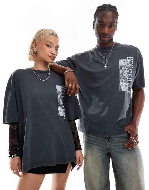 ASOS DESIGN Halloween unisex oversized t shirt with Beetlejuice prints in washed black ASOS Very well made.
