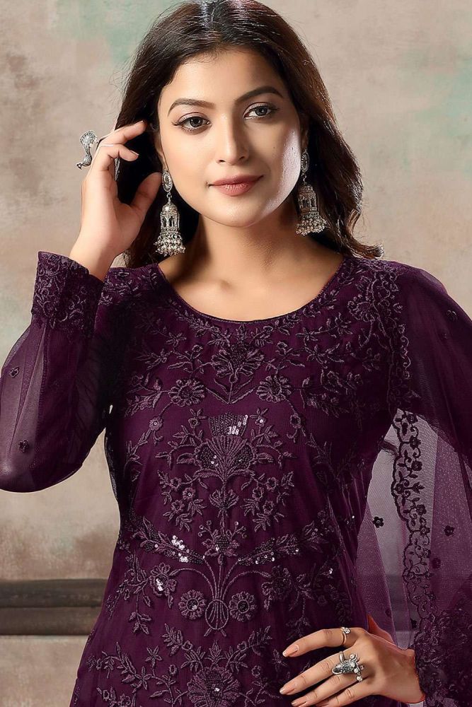 Wine Straight pant suit Online Designer Net Straight pant suit with Wine Dupatta SK13097 Very well made.