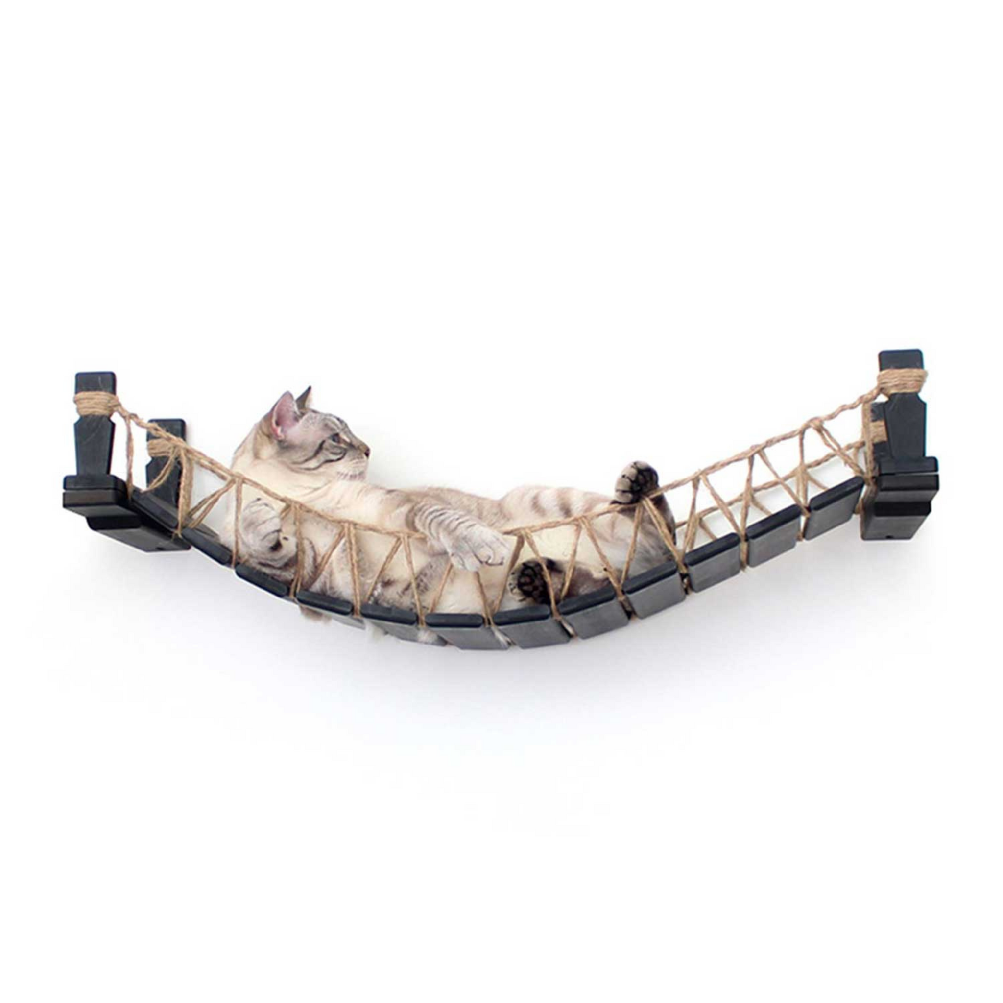 Purife Handcrafted Wood Cat Wall Suspension Bridge Cat Wall Shelves with Ladder Floating Steps Wall Mounted Cat Hammock Bed Amazon Pet Very well made.