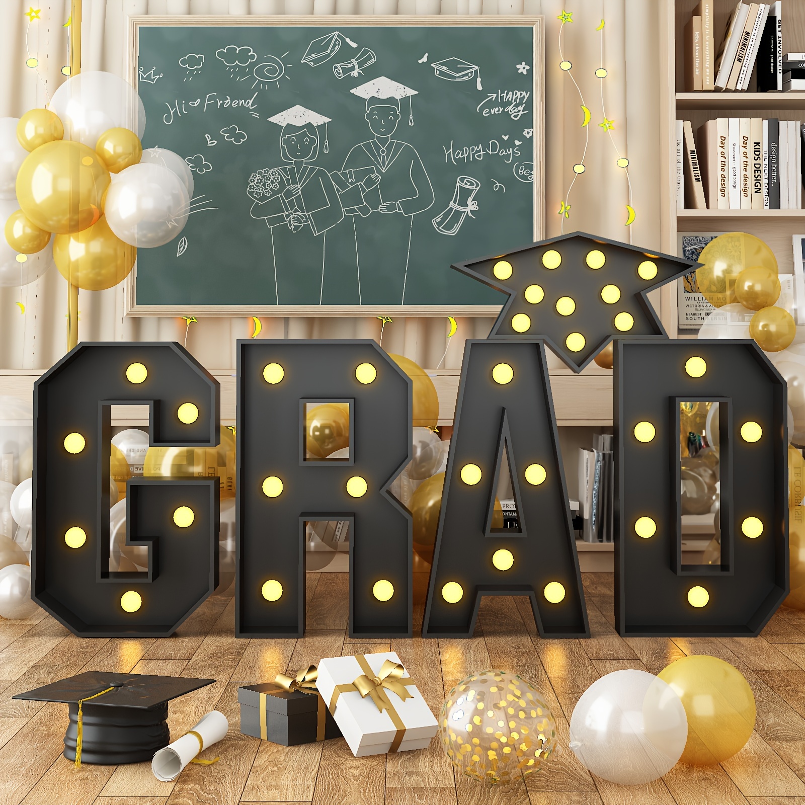 Graduation Decorations Class Of 2024 Large Marquee Light Up Numbers 2024 And Graduation Cap 2.3FT Marquee Numbers 2024 LED Mosaic Number 2024 Grad Si Very well made.