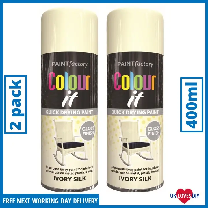 2x Colour It Ivory Silk Gloss Spray Paint 400ml Very well made.