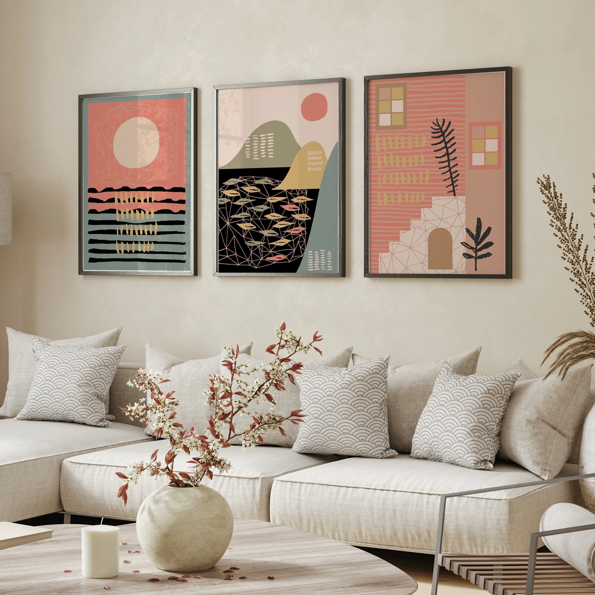 Boho Modern Contemporary Art Print Set of 3 Natural Terracotta Trio Gallery Wall Set Very well made.