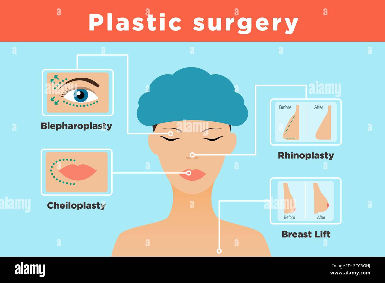 Plastic surgery Vector illustration for posters and banners Infographics with female portrait and different types of plastic surgery Stock Vector Image Art Alamy Very well made.