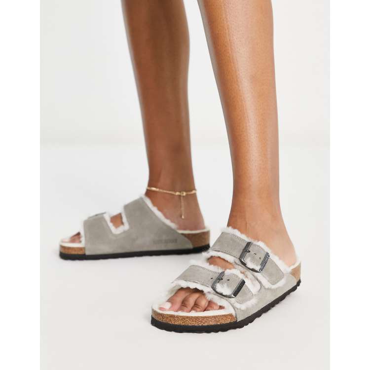 Birkenstock Arizona Sandales plates avec doublure en fausse fourrure Gris Very well made.