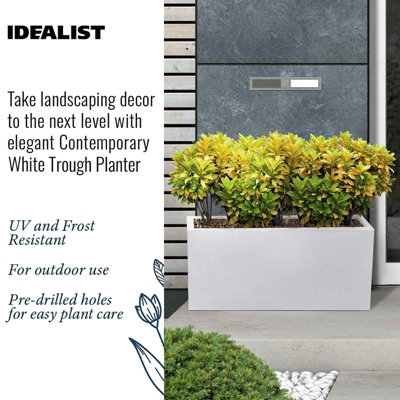 Set of 2 IDEALIST 65cm Long Trough Rectangular Garden Planter White Reinforced Stone Outdoor Large Very well made.
