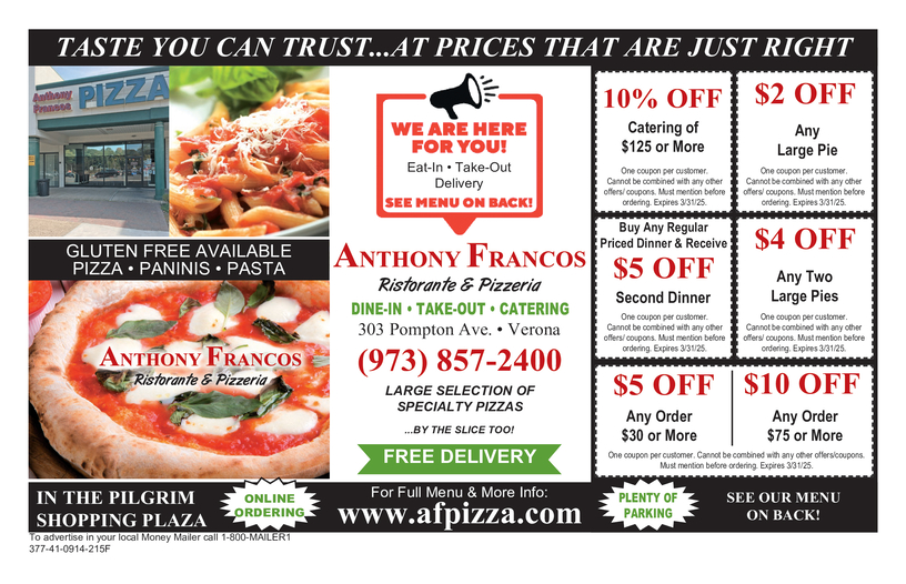 ANTHONY FRANCOS PIZZA Livingston 489 S Livingston Ave Menu Prices Restaurant Reviews Order Online Food Delivery Tripadvisor Very well made.