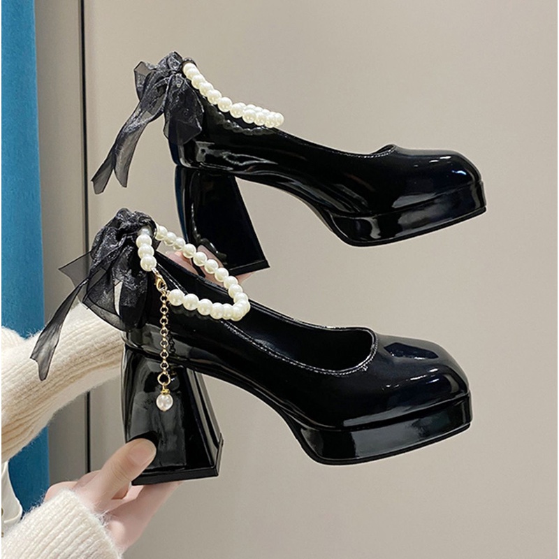 Black Block Heels Mary Jane Shoes Minji NewJeans Fashion Chingu Very well made.