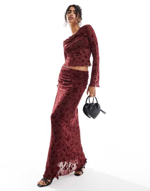 ASOS DESIGN flock floral midi skirt in burgundy part of a set ASOS Very well made.