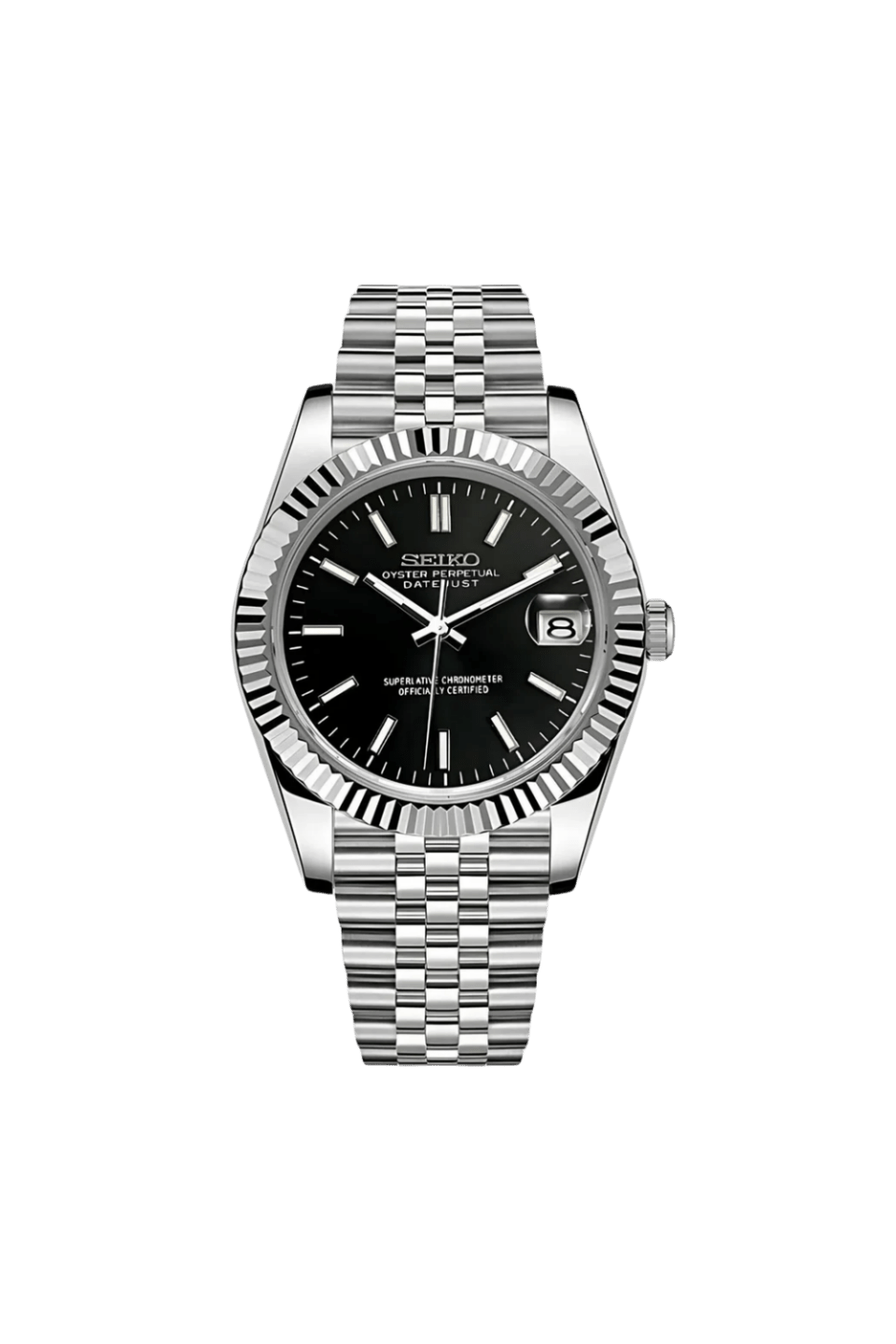 Seiko Mod Datejust Homage Blue x Silver Fluted Bezel Stainless Steel Jubilee Date NH35 Seiko Mod Watch Mod Custom Watch Mod Very well made.