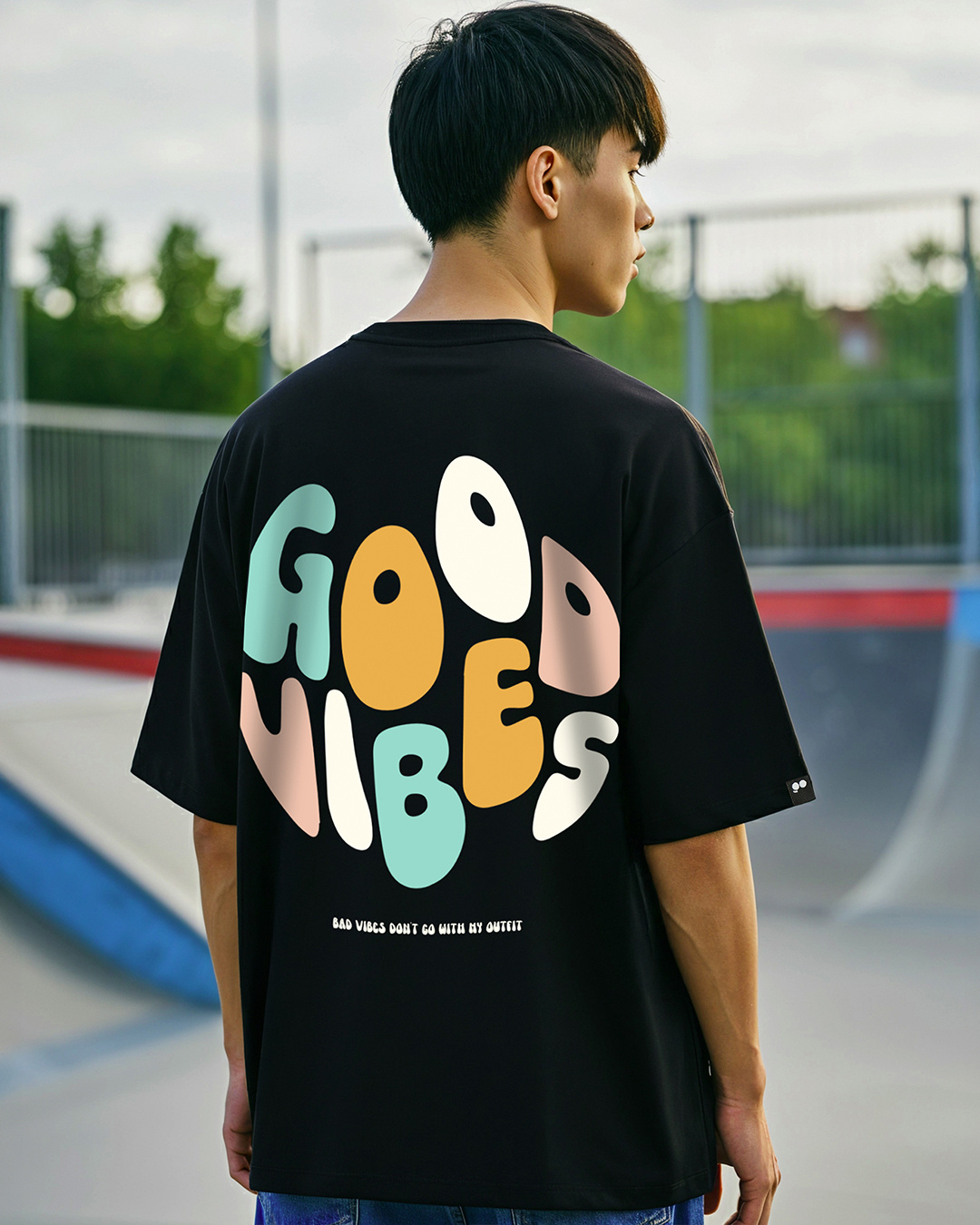 Buy Men s Black Good Vibes Typography Oversized T shirt Online at Bewakoof Very well made.