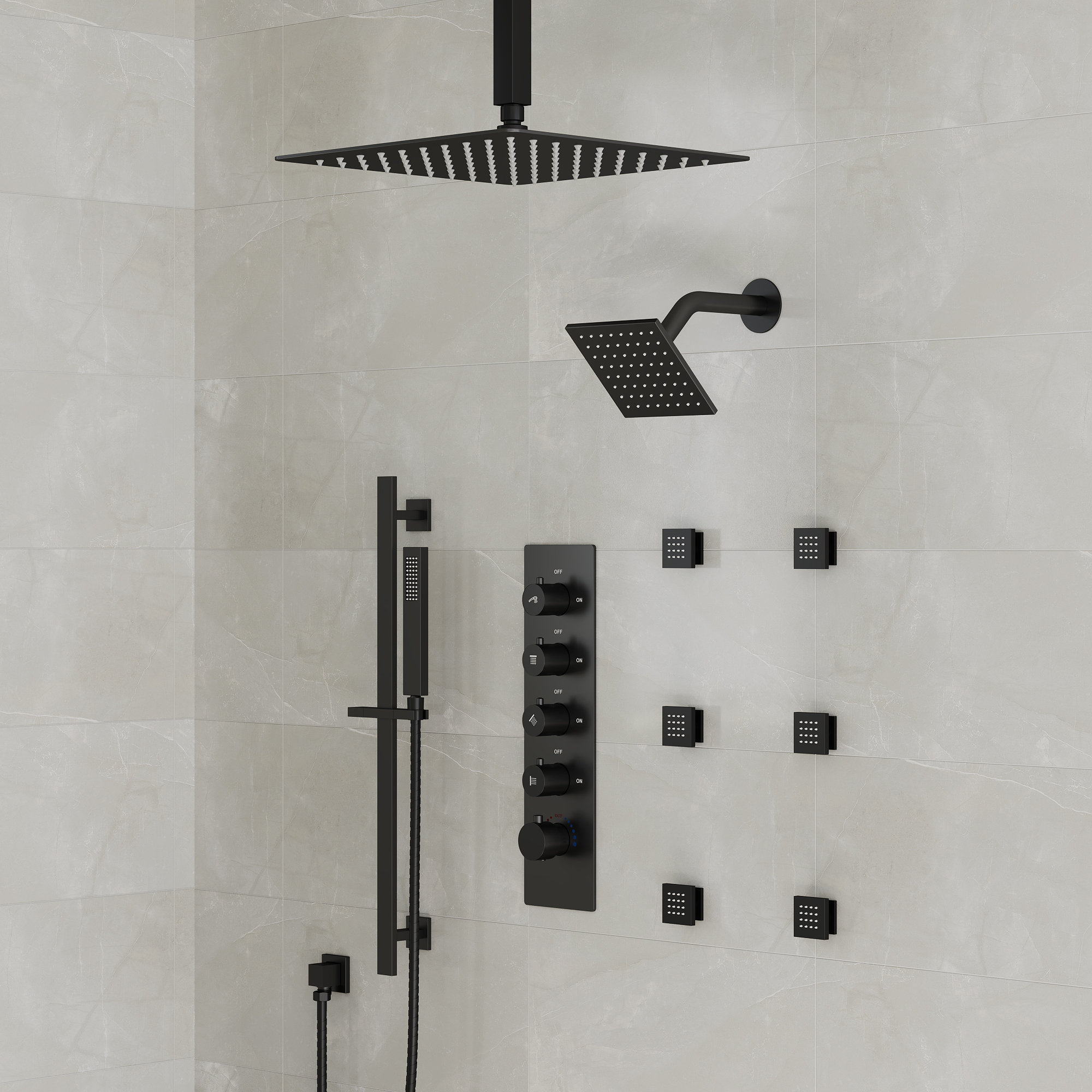 Luxury Thermostatic Rain Shower System with Wall SPA Body Jets 16 Inch Ceiling Mount Shower Combo Set with Rainfall Shower Head Hand Shower All Fun 16 Inch Ceiling Mount Very well made.