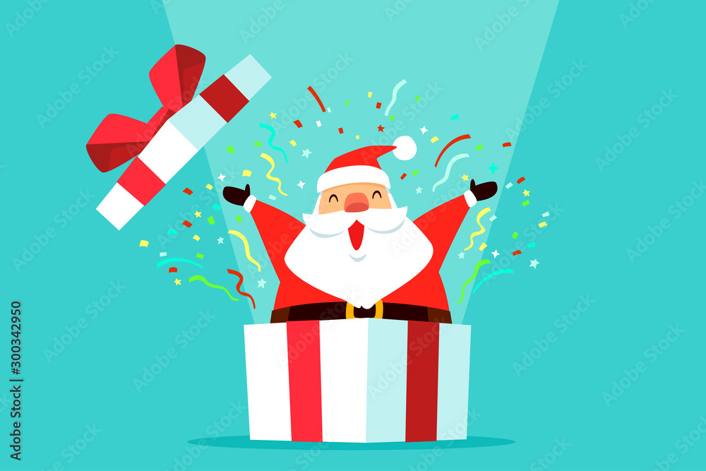 santa claus come out of gift box with confetti Adobe Stock Very well made.