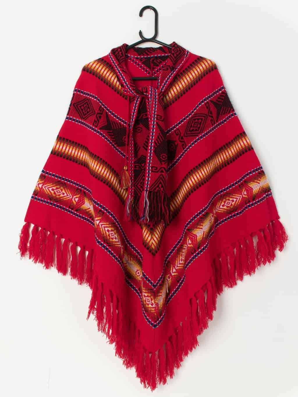 Vintage red woven poncho with scarf Small Medium St Cyr Vintage Very well made.