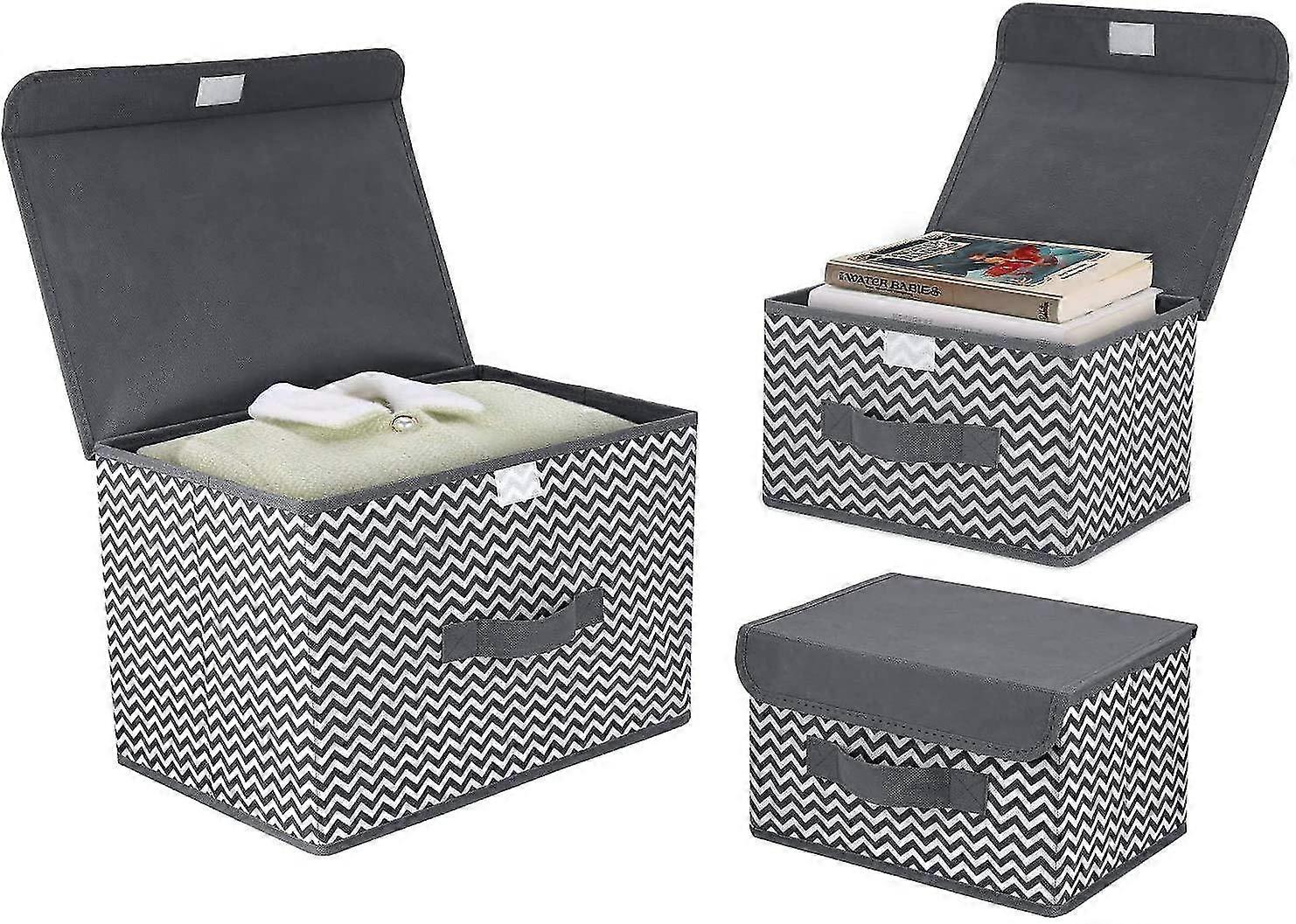 3 Pack Foldable Storage Boxes With Lids Fabric Storage Organiser Box With Handle Large Storage Bins For Toys Books Closet Bedroom Home grey Very well made.