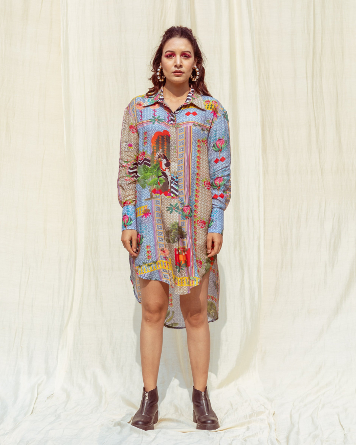 Buy Cool Sexy Printed Slit Satin Shirt Dress In Multiple Colors 6thStreet Qatar Very well made.