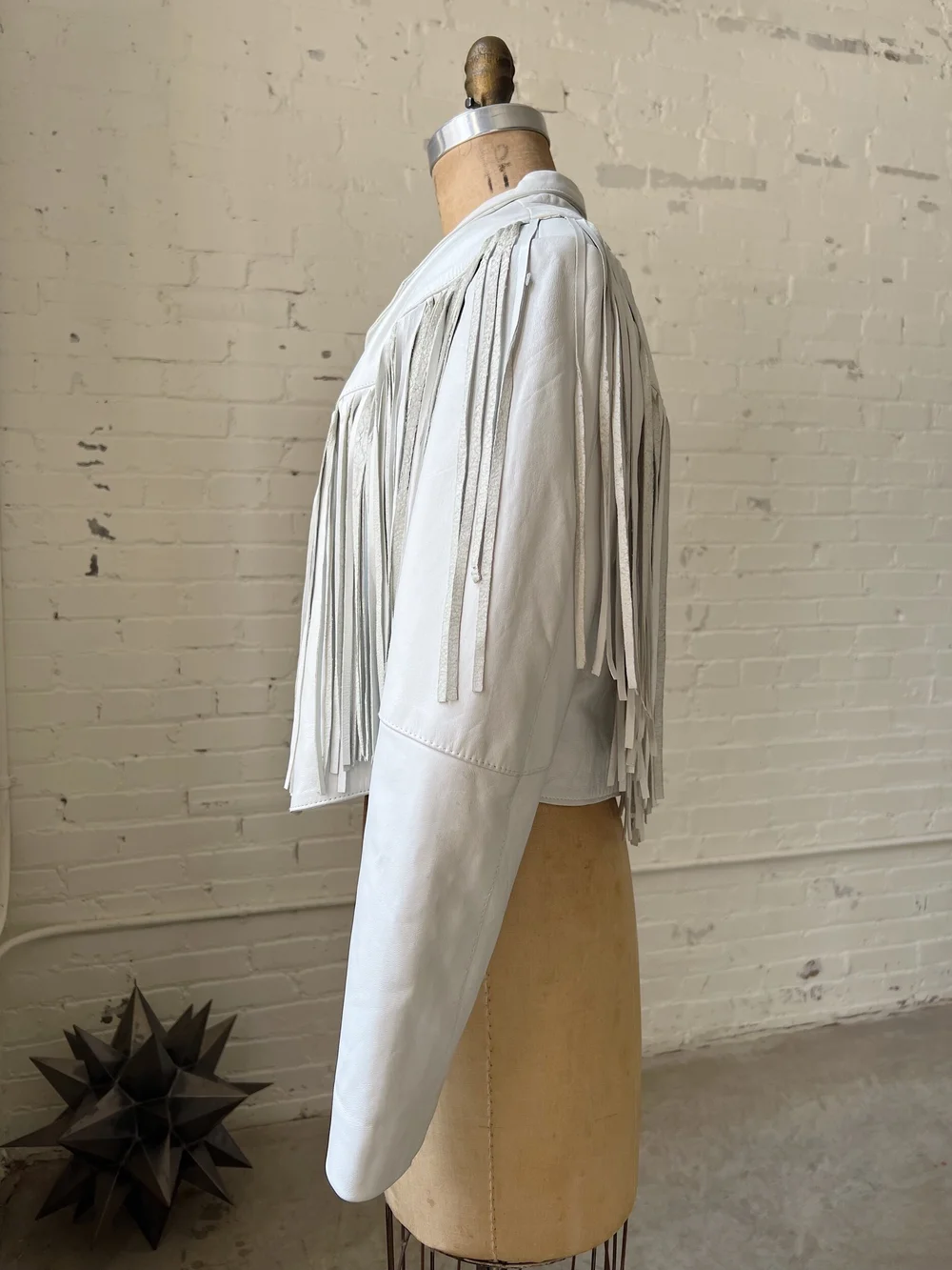 White Leather Fringe Coat M Very well made.