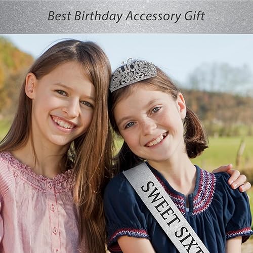 VeryMerryMakering 16th Birthday Sash and Tiara for Girls Fabulous Set Glitter Sash Flowers Rhinestone Silver Premium Metal Tiara 16th Birthday Gifts for Sweet 16 Birthday Party in Oman Whizz Party Pac... Very well made.