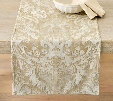 Stella Damask Organic Cotton Table Runner Pottery Barn Very well made.