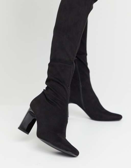 Bershka Cuissardes talon en imitation daim Noir Very well made.