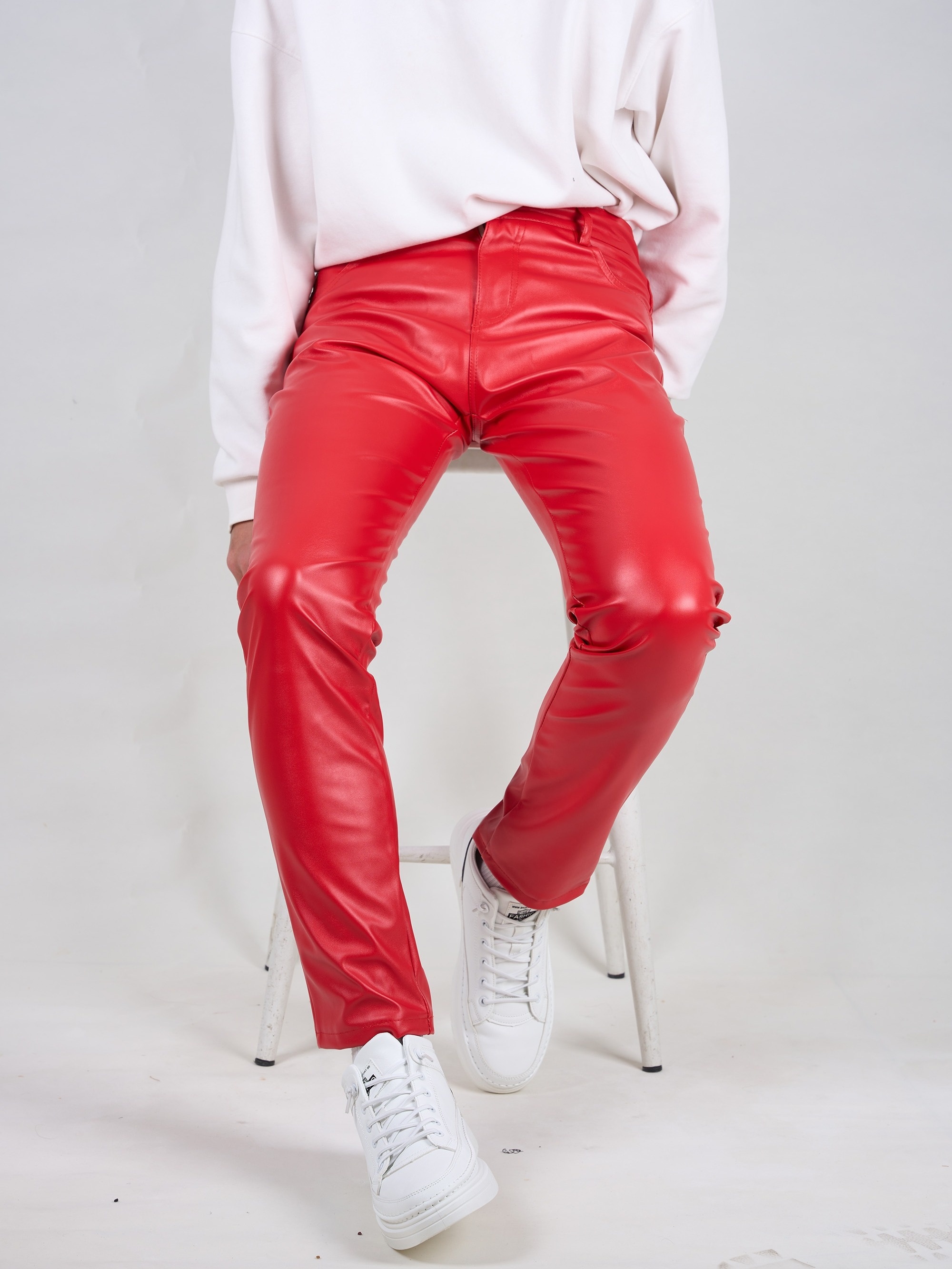 s Fashion Fit PU Leather Pants Solid Color Breathable Polyurethane Coated Fabric Casual Trousers with Pockets for Spring Outdoor Activities Very well made.