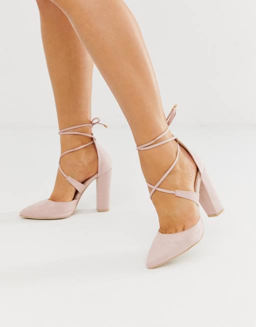 Glamorous Wide Fit blush block heeled tie up pumps ASOS Very well made.