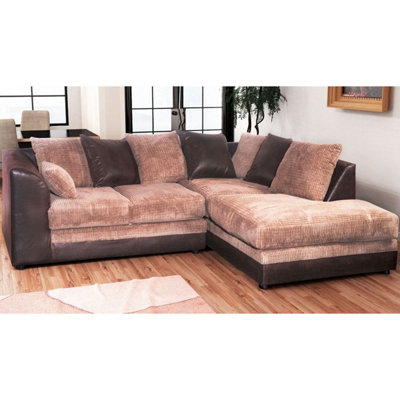 Luca 3 4 Seater L Shaped Corner Sofa Fabric and Leather Trim Brown and Beige Right Very well made.