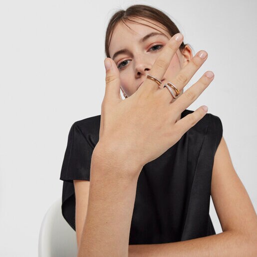 TOUS Anillo Doble de Plata de Primera Ley para Mujer con Motivo de Coraz n 1 cm de Ancho Elegante y Vers til Colecci n Straight Very well made.