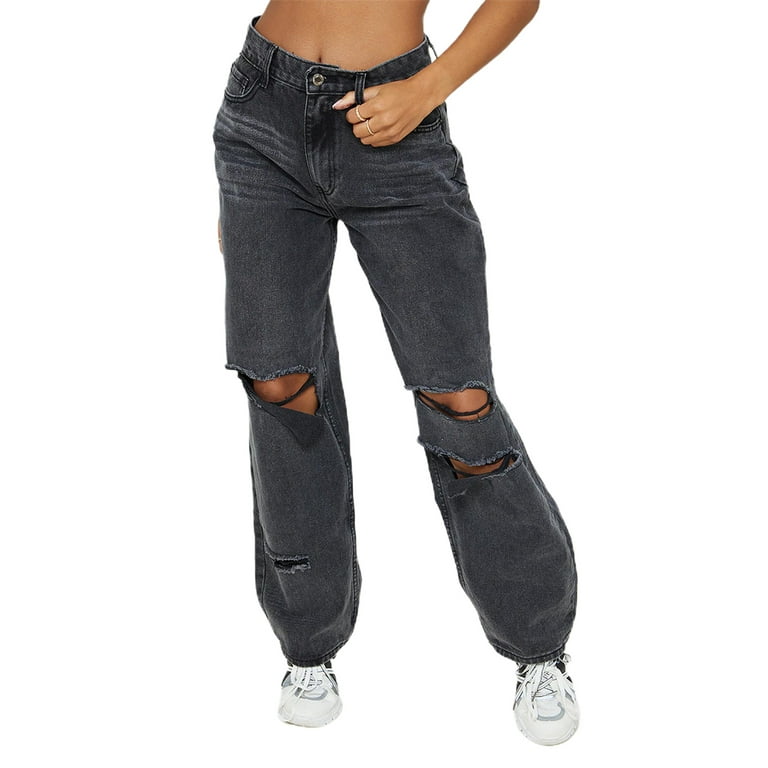 Lwxqwds Womens Distressed Ripped Jeans High Waisted Boyfriend Baggy Straight Leg Casual Denim Pants Xs xl Women s Size Large Black Very well made.