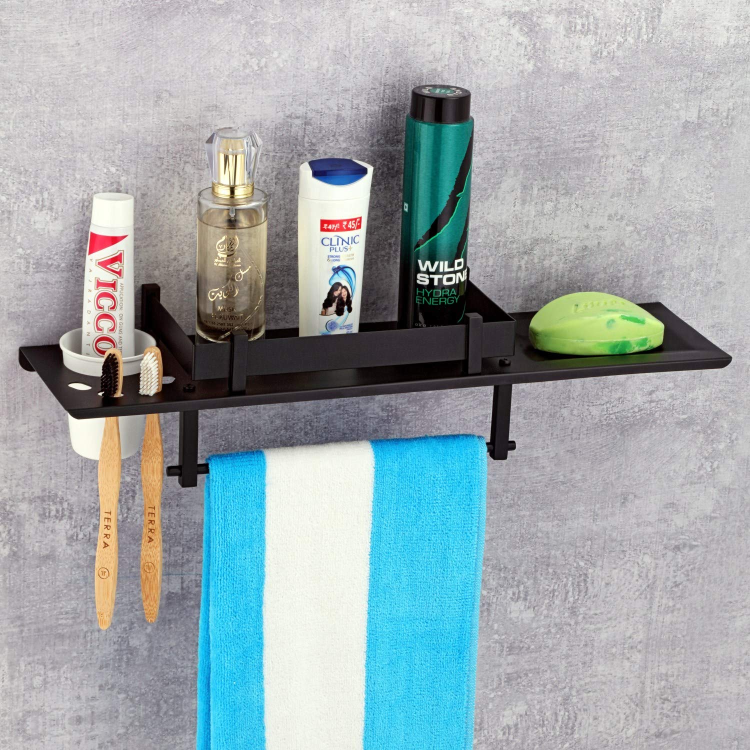 Plantex Stainless Steel 4in1 Multipurpose Bathroom Shelf Rack Towel Hanger Tumbler Holder Soap Dish Bathroom Accessories 18 X 5 Inches Matt Black Amazon Home Kitchen Very well made.