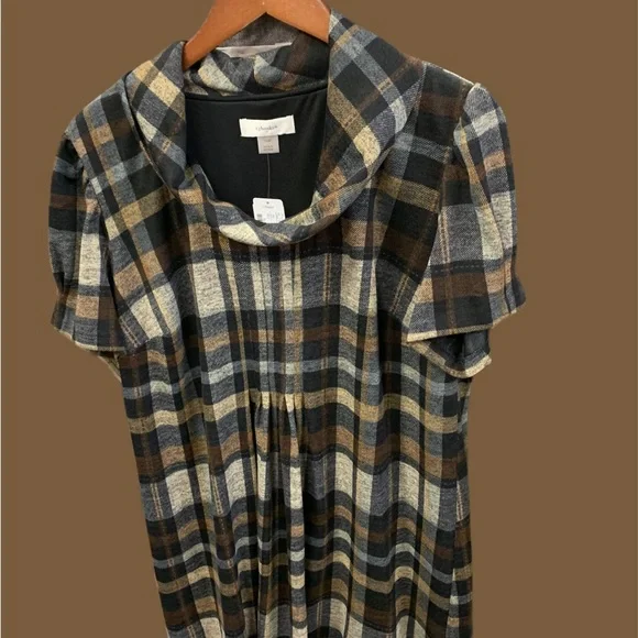 Cjbanks plus size short sleeve cowl neck fully lined brown plaid dress Very well made.