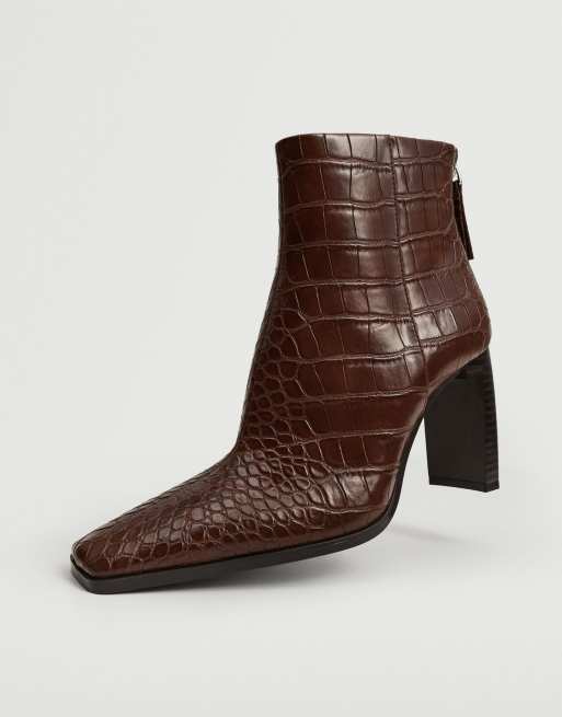Mango heeled ankle boots with square toe in brown croc Very well made.