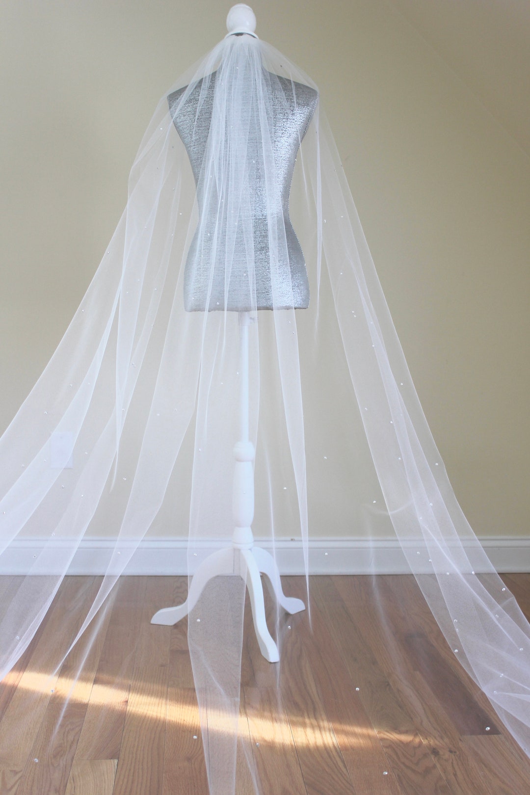 Crystal chapel wedding veil by twigs and honey Crystal confetti train bridal veil Style 2062 Very well made.