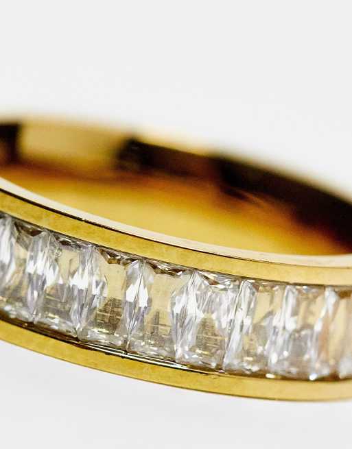 Anillo de acero inoxidable chapado en oro con cristales de talla baguette Alexa de Bohomoon Very well made.