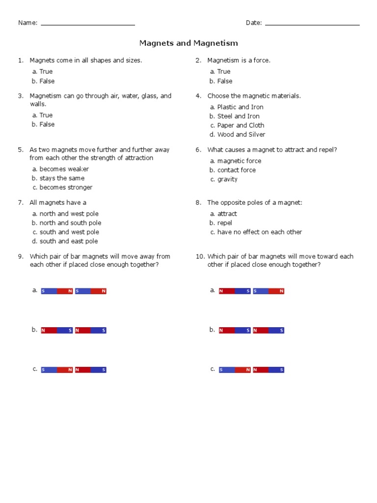 Magnets and Magnetism Grade 3 Free Printable Tests and Worksheets HelpTeaching PDF Magnet Magnetism Very well made.