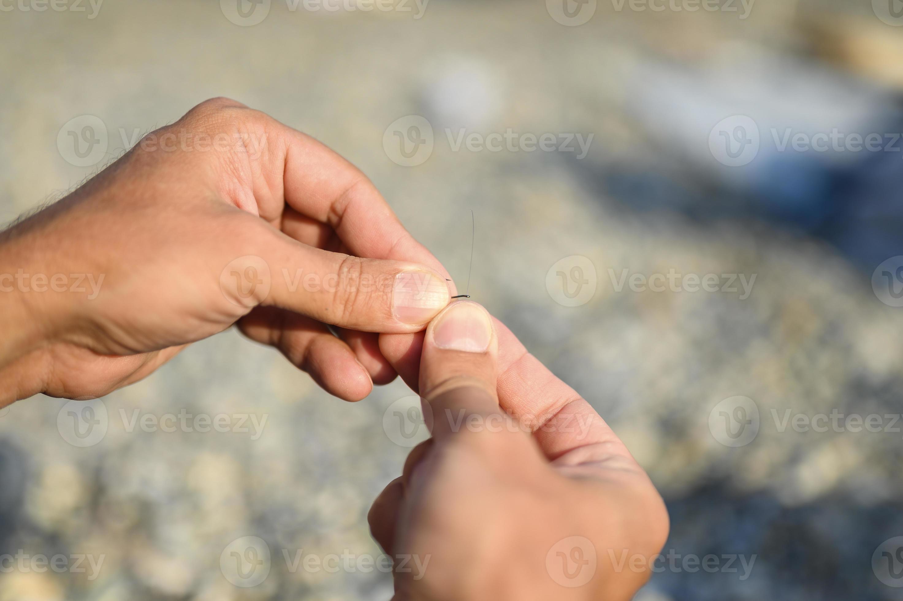 Man s hands tying a fishing line on a fishing hook 2175161 Stock Photo at Vecteezy Very well made.